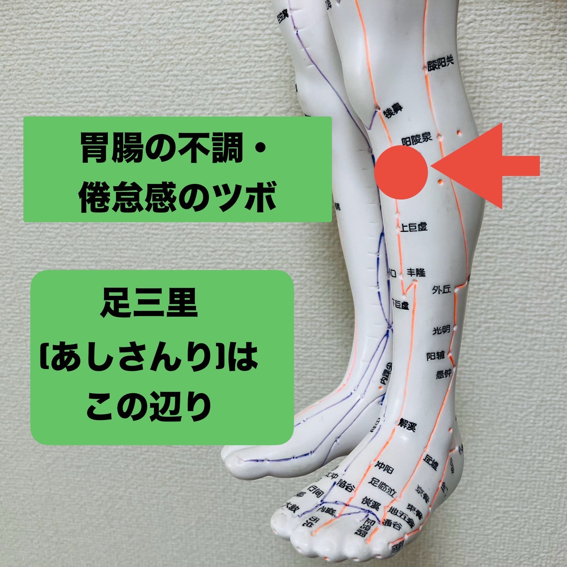 そんな時は足三里(あしさんり)のお灸をお勧めします。