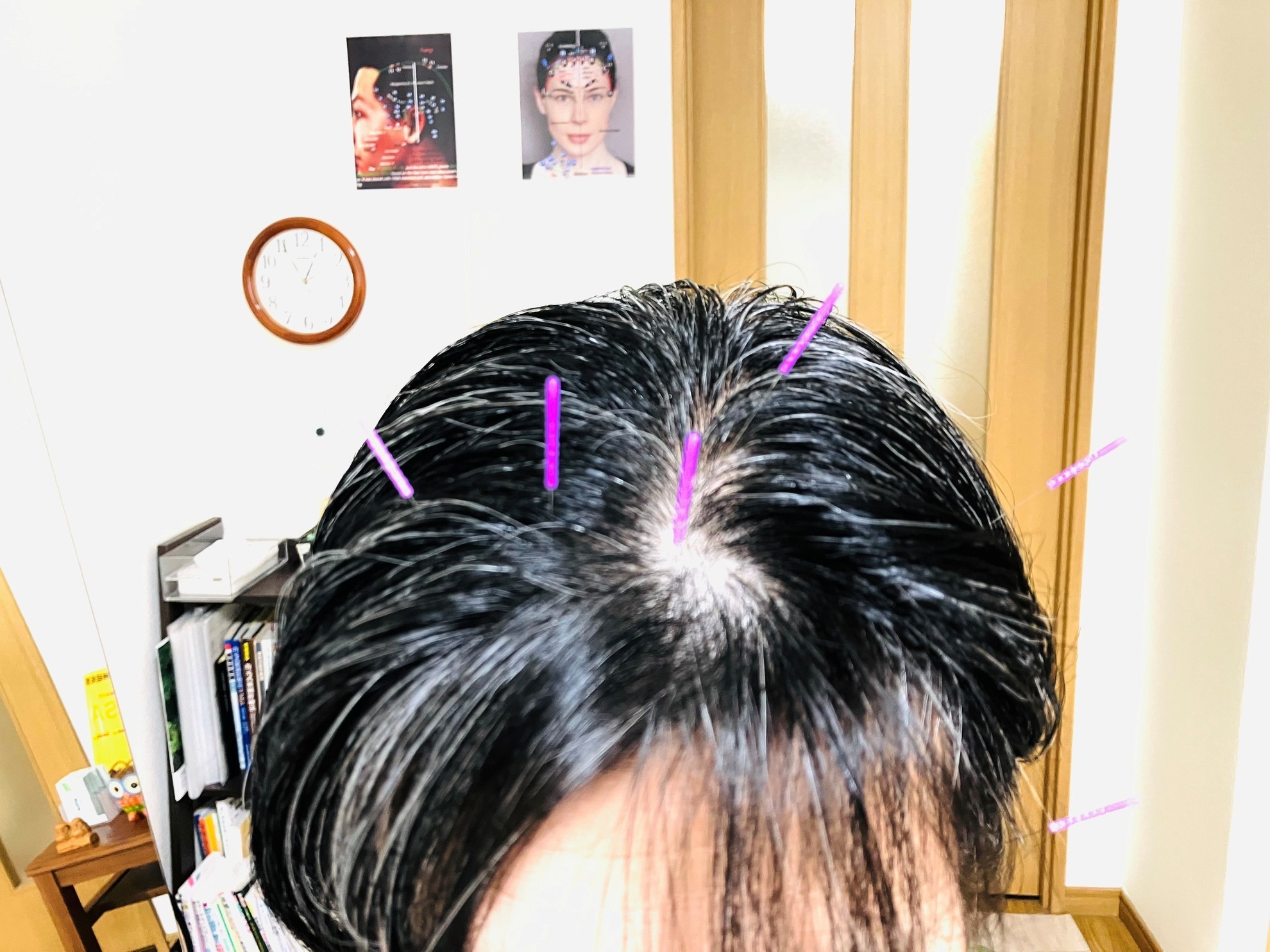 施術では頭皮にある全身の部位に対応したツボに鍼をします。