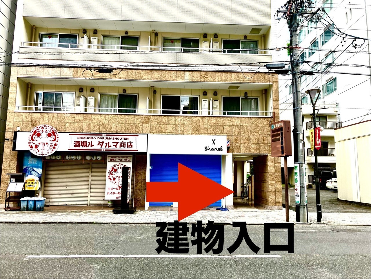 ・1階は「酒場ル ダルマ商店」さん「ヘアーサロン シャレル」さんがあります。