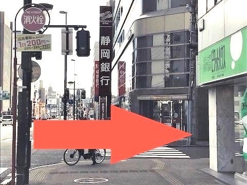 静岡銀行駅南支店の交差点を渡らずに右に曲がります。