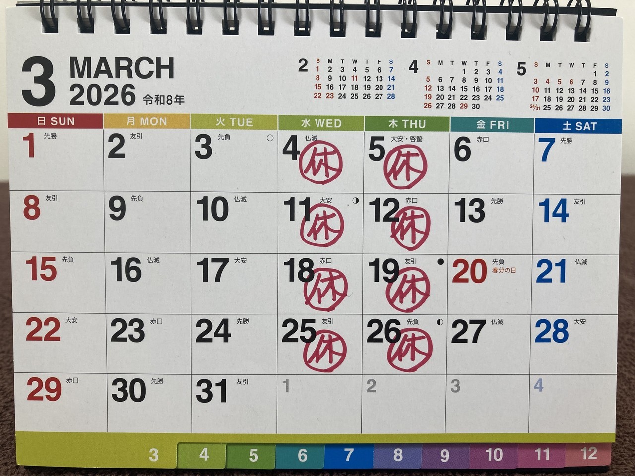 3月の休診日は