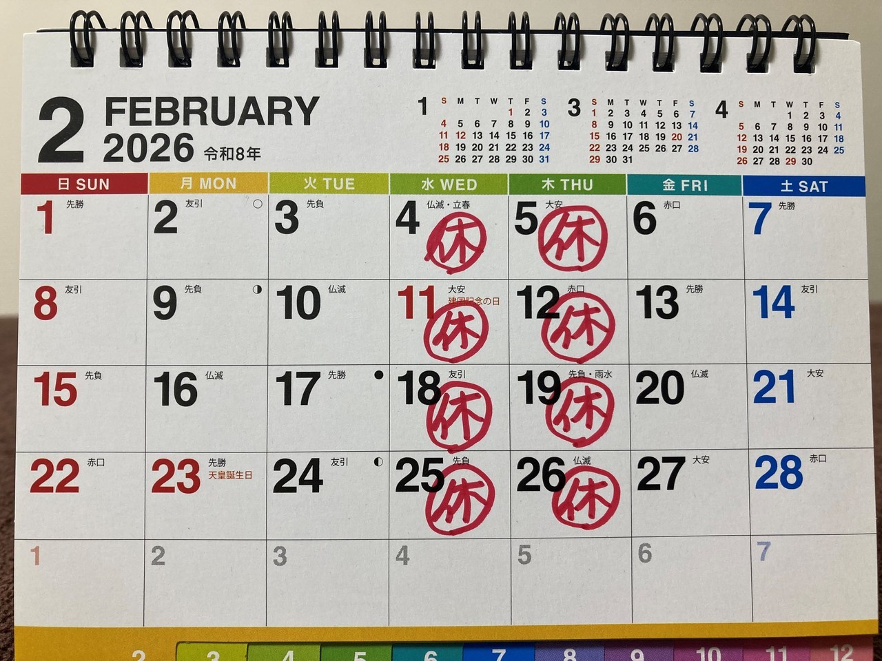 | 日 | 月 | 火 | 水 | 木 | 金 | 土 | 祝 | |